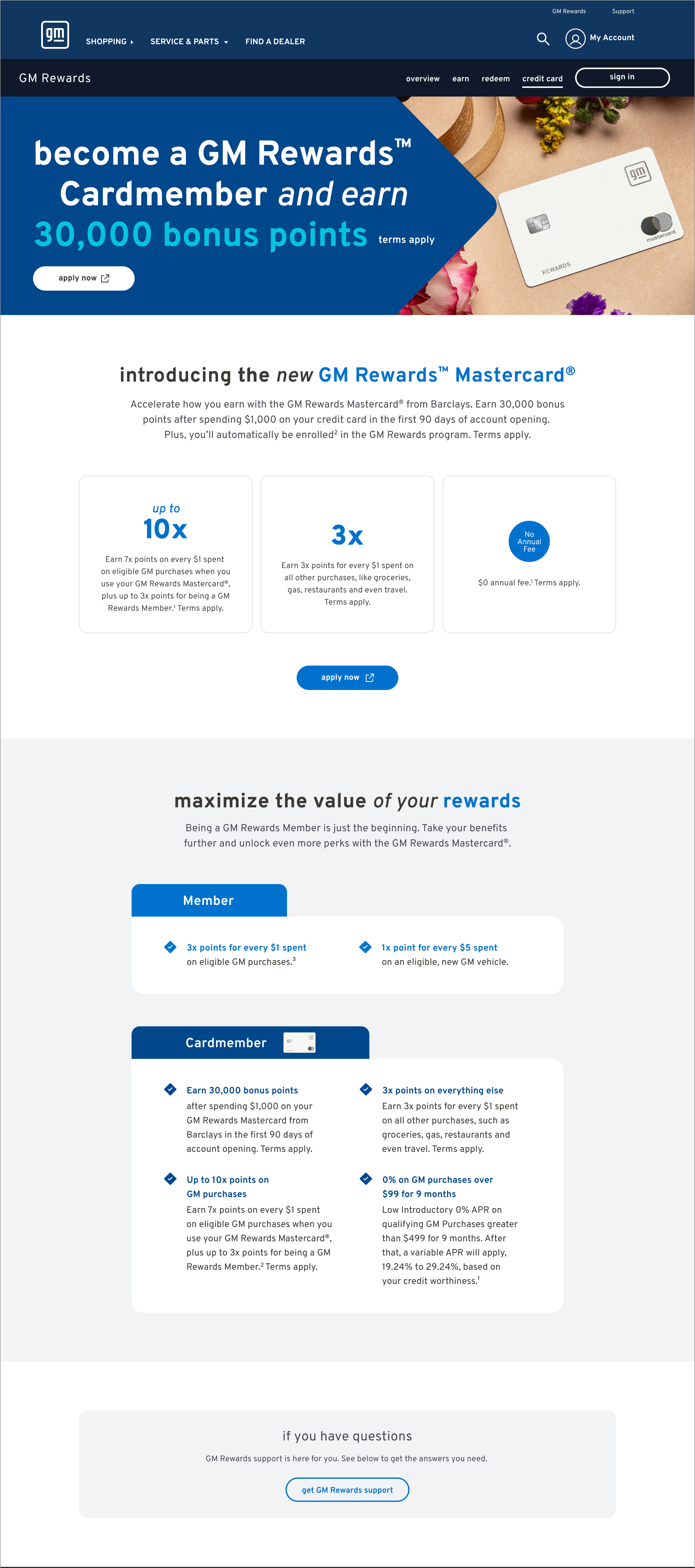For 2025, our clients tasked us with creating a whole new take on our GM Credit Cards and GM Rewards loyalty program. We entered a new partnership with Barclays, moving from Marcus by Goldman Sachs — and migrated our Cardmembers from our larger portfolio of four credit cards — to one consumer credit card and one business credit card. We leveraged our years of loyalty and credit card experience — and leaned into relationship mapping and owner research — seeing how we could best create lasting and meaningful relationships with our Members and Cardmembers.